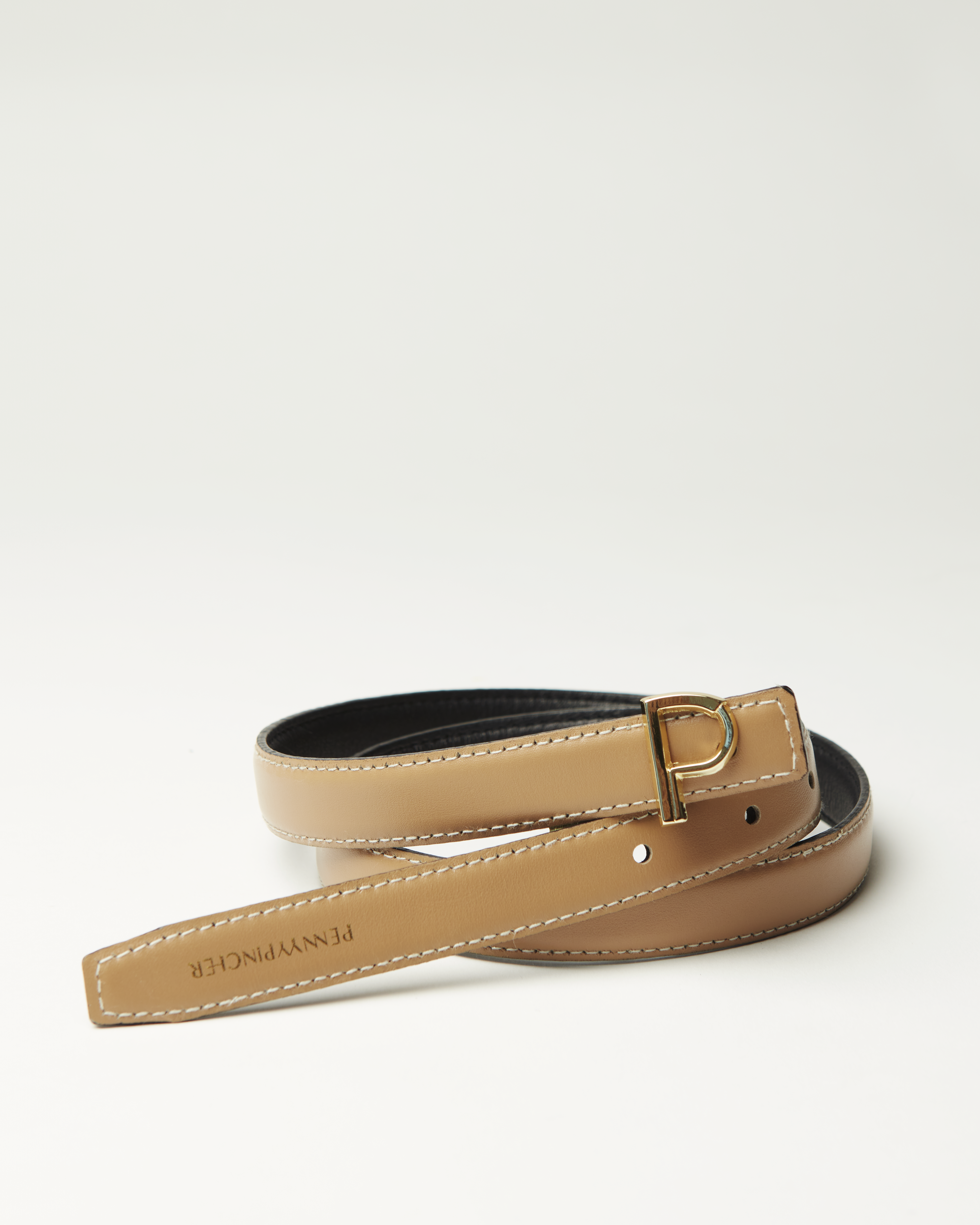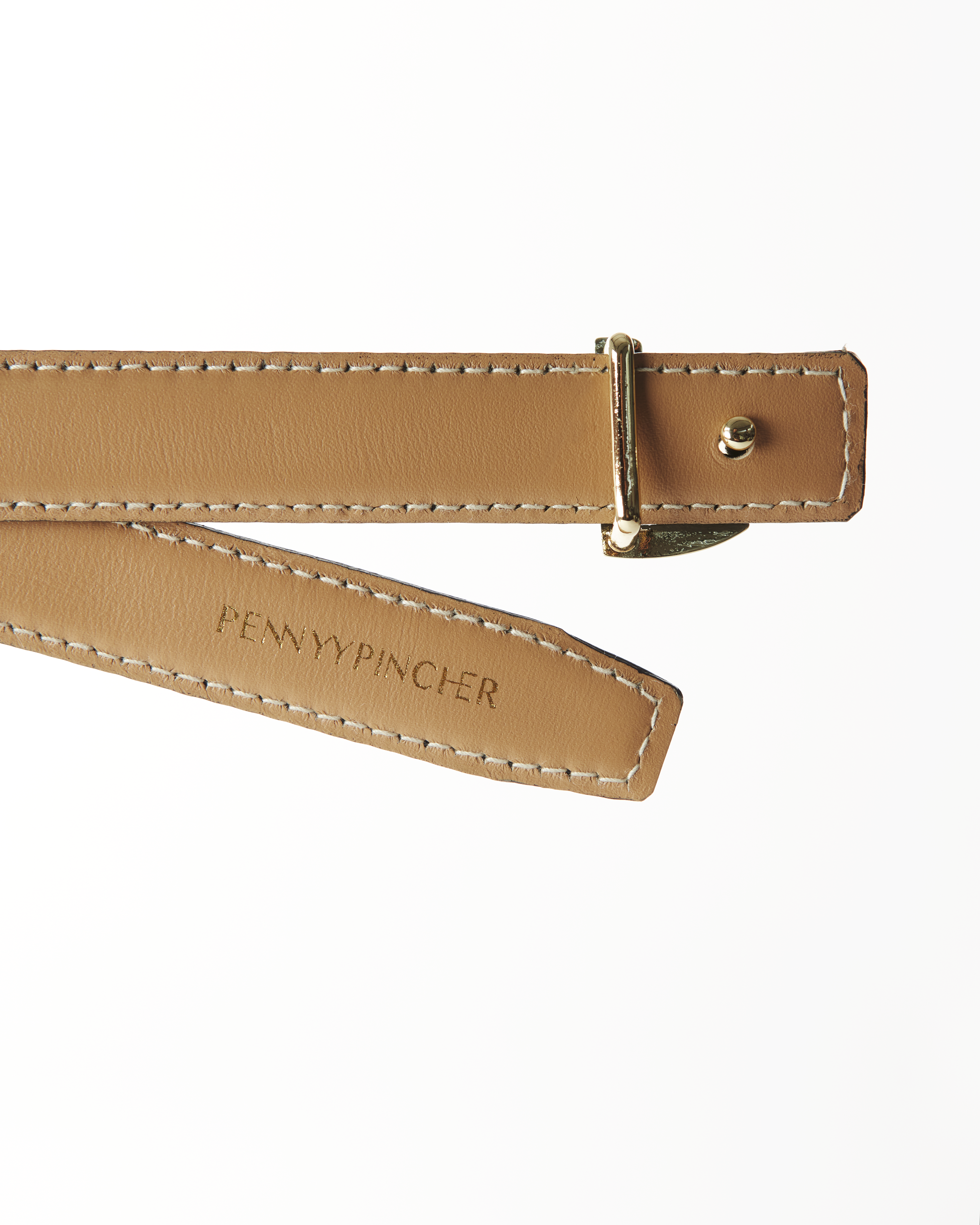 Handcrafted in Bangkok. The P Belt was designed for everyday use. It was made with an authentic organic leather, in order to extend its longevity. With hand-painted process, the belt requires an extra care to preserve the material. For the metal part, the signature P buckle completes the total look of the belt. It was made with brass-plated zinc hardware and delicately coated in gold, piece by piece. The P Belt can be worn in both sides along with PENNYYPINCHER’s signature gold P buckle. Helping you express your identity and satisfy any desire you may have.